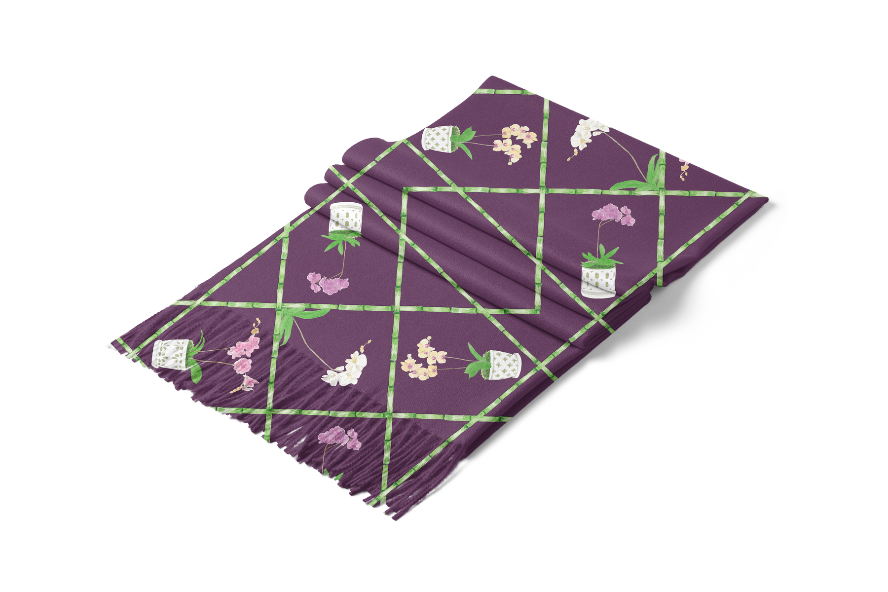 Indulge in the beauty of tradition with our exquisite Cashmere-Feel Orchid Bamboo Blanket Scarf. This luxurious accessory showcases a stunning Orchid design.